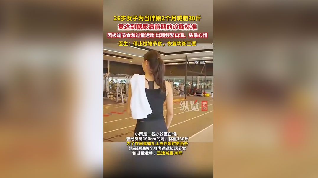 26岁女子为当伴娘两月暴瘦30斤成糖尿病前期