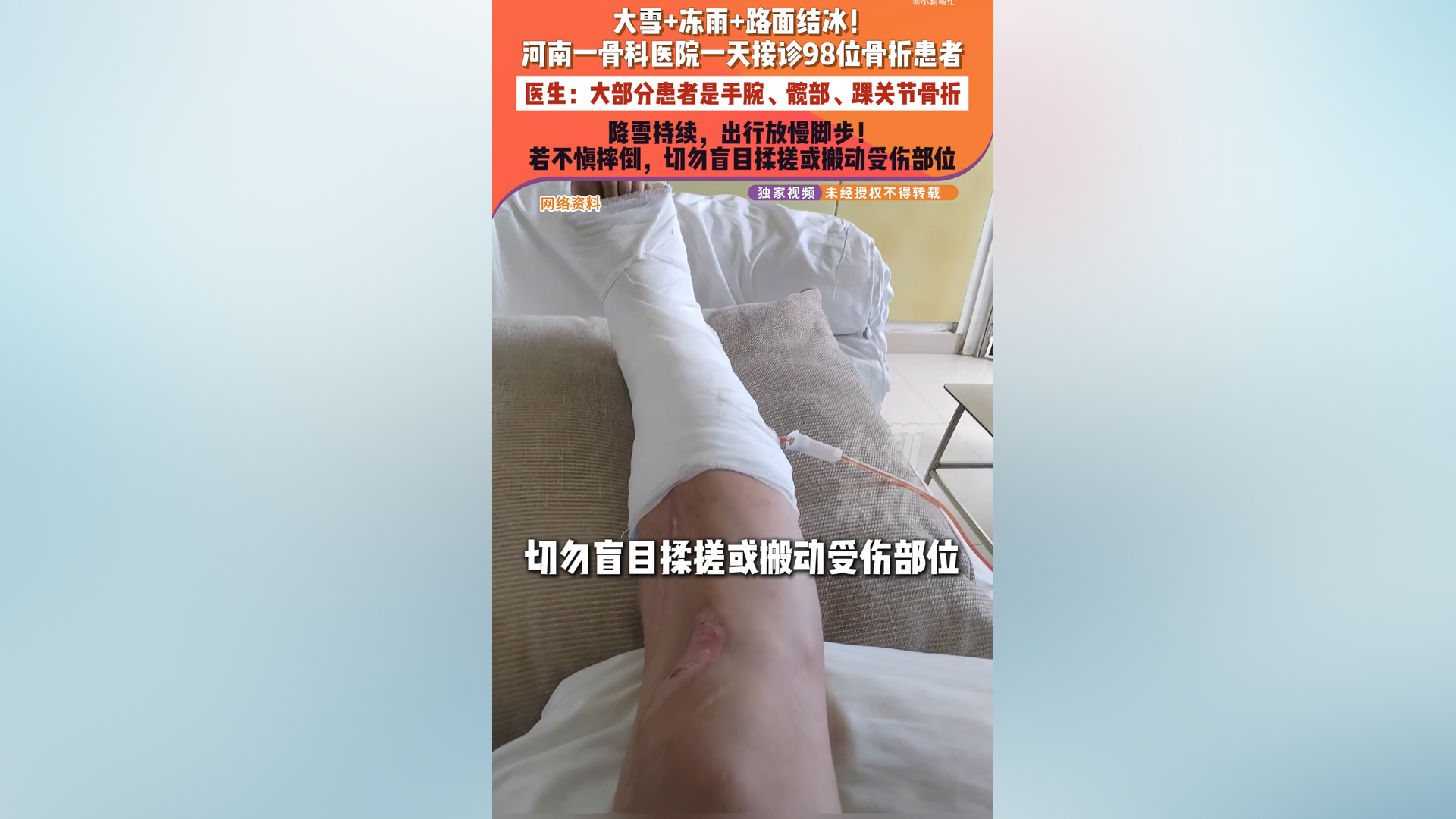 大雪+冻雨+路面结冰 郑州一医院1天接诊98名骨折患者