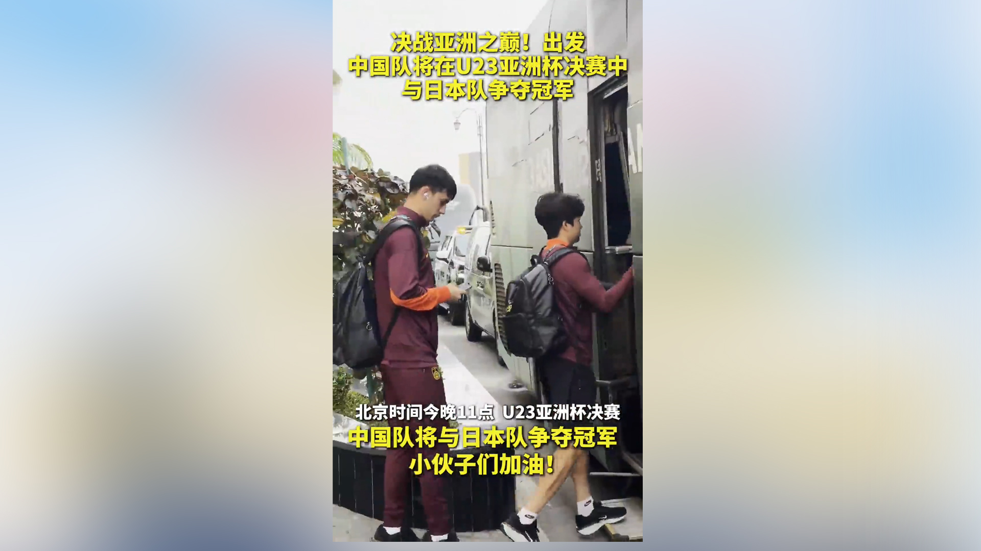 小伙子们加油!U23男足出发前往球场