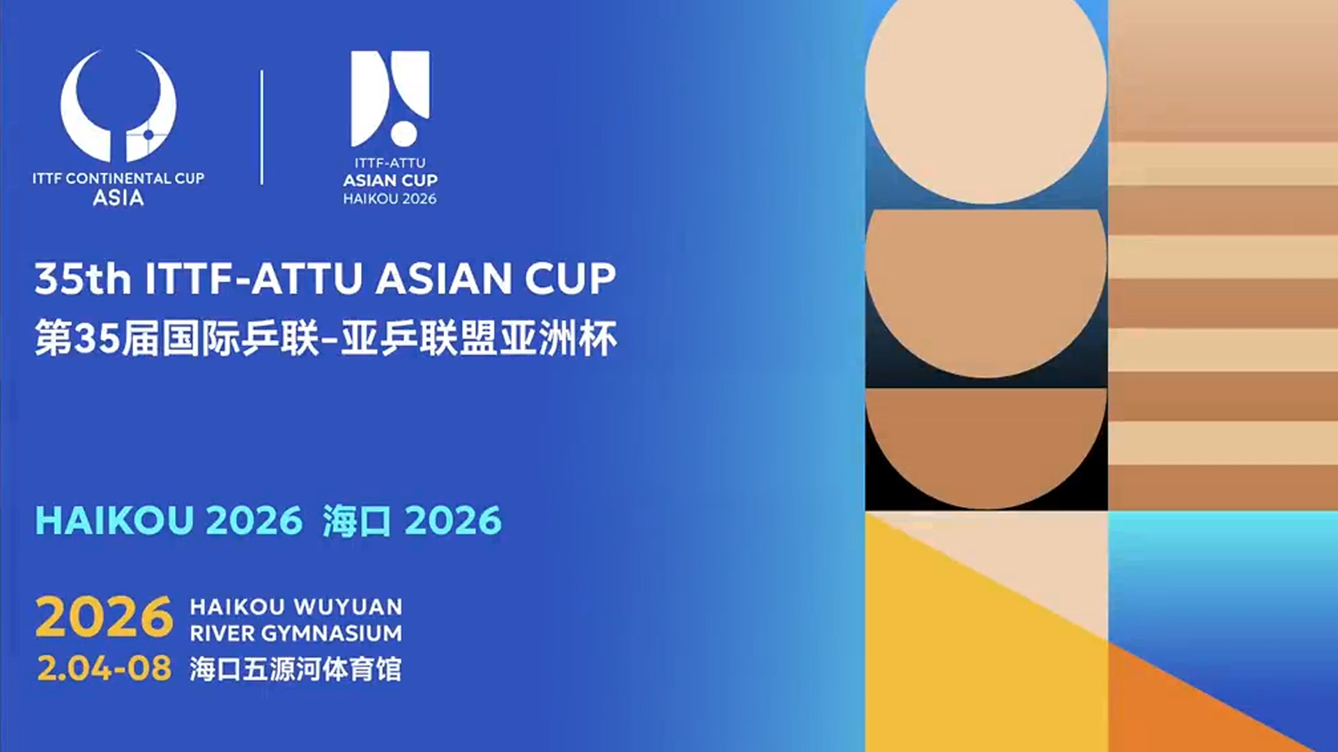 2月4日至8日 第35届国际乒联-亚乒联盟亚洲杯将在海口开赛