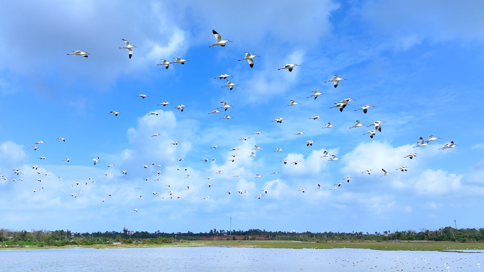海口东寨港现150余只反嘴鹬 鸟浪翻飞绘就生态美景