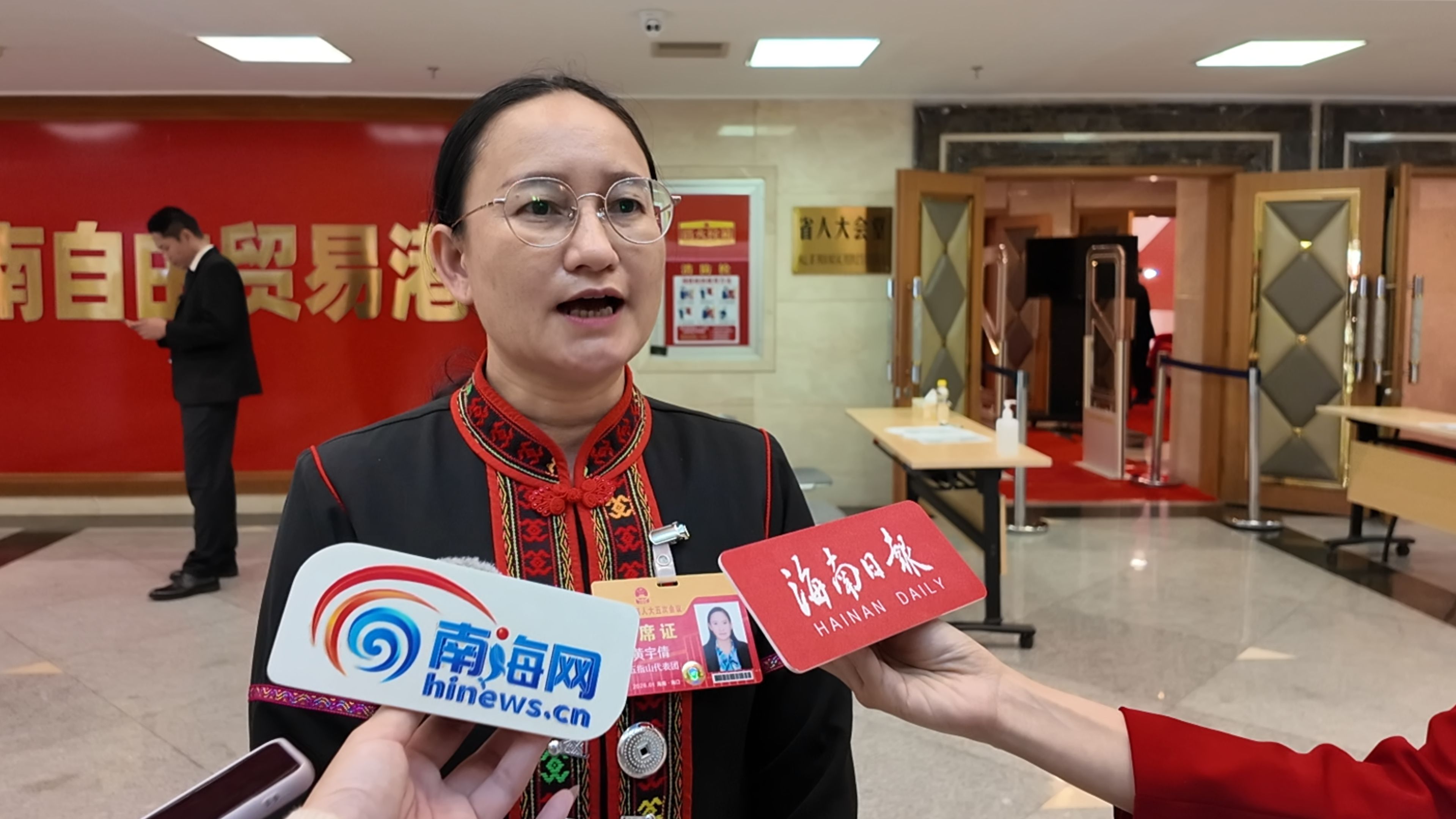 在场 | 海南省人大代表唐丽金携黎锦亮相“代表通道”