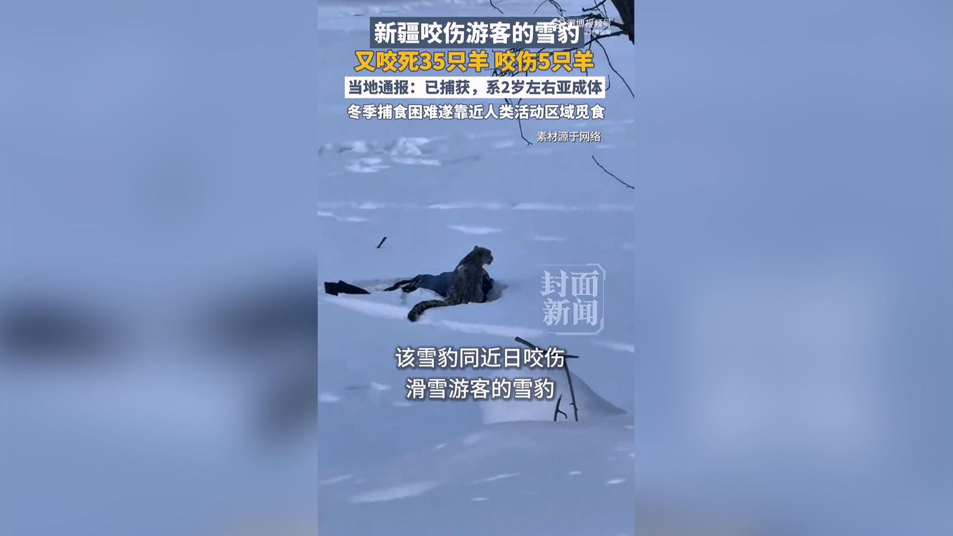 新疆伤人雪豹又咬死35只羊 官方通报:已捕获