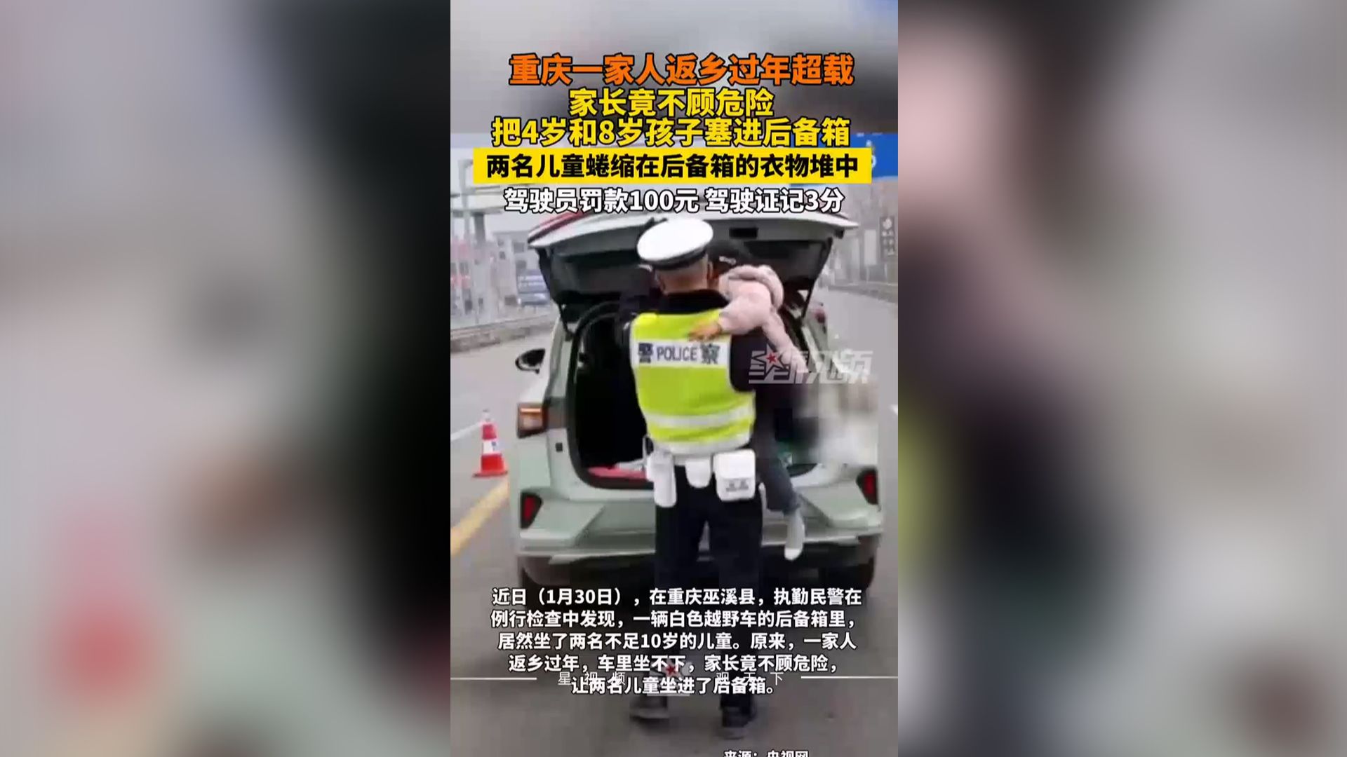 一家人返乡过年超载,家长不顾危险把4岁和8岁孩子塞进后备箱