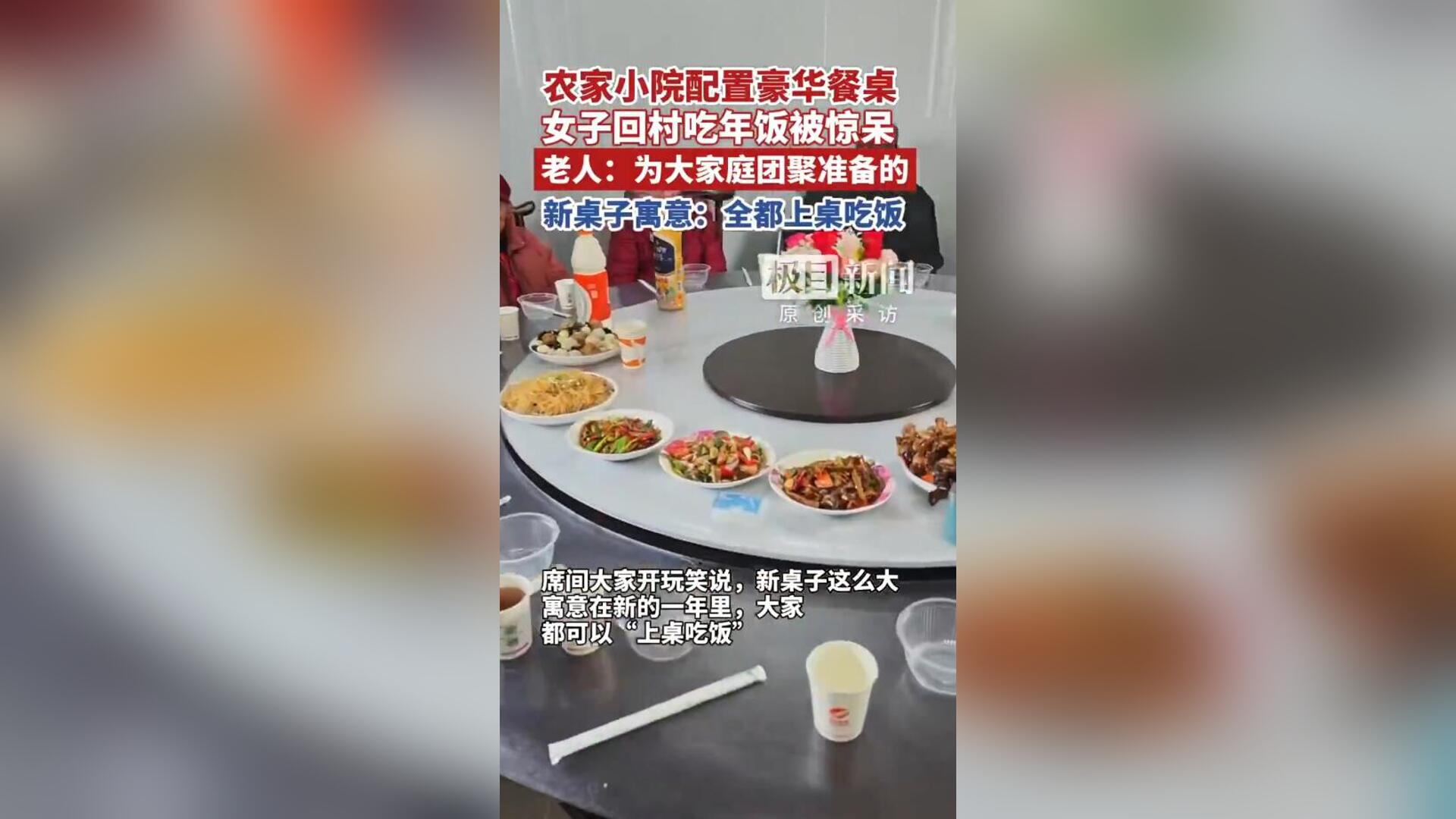女子回村吃饭 被超大电动餐桌惊呆