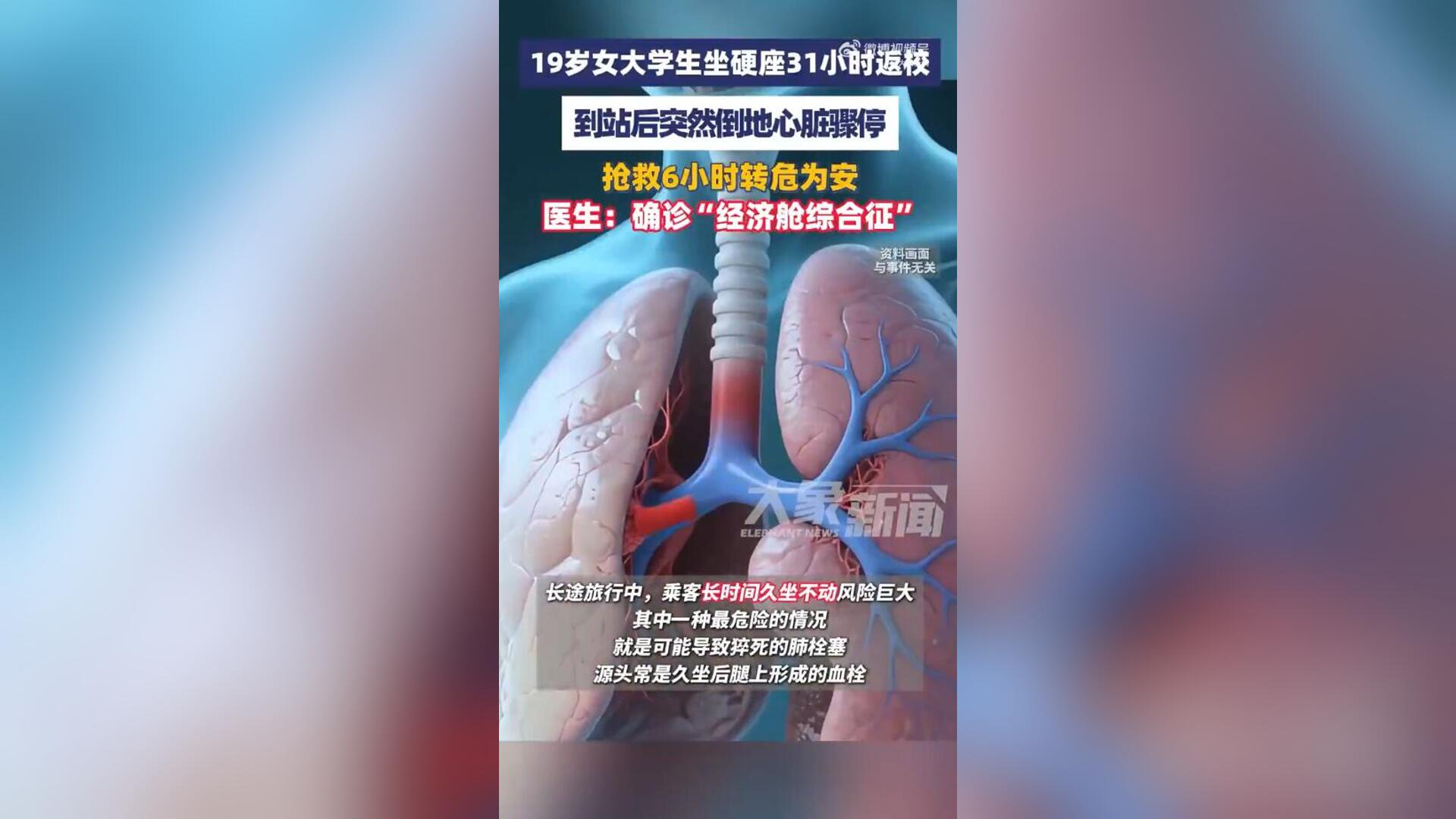 19岁女大学生坐硬座31小时返校 到站后突然倒地心脏骤停