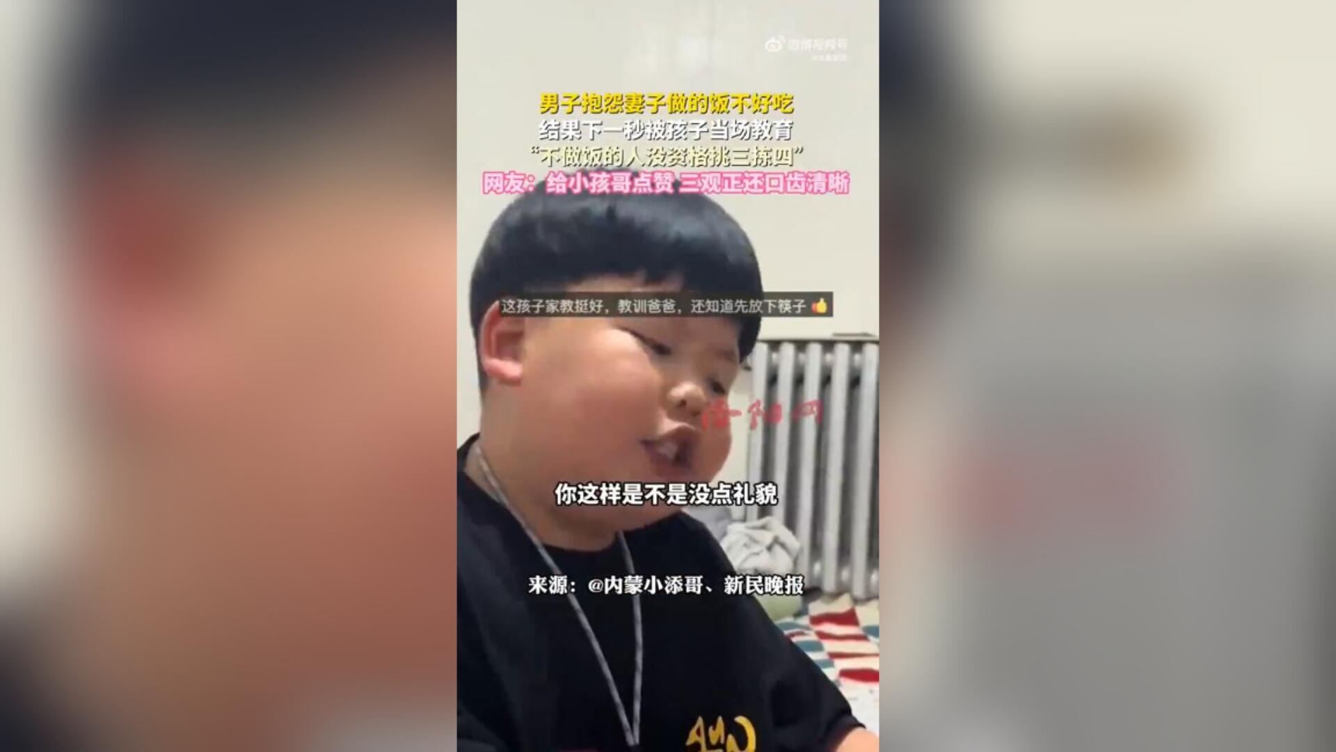 男子抱怨妻子做饭难吃 下一秒被儿子当场教育
