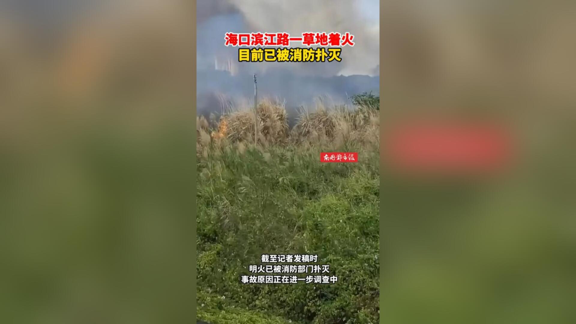 海口滨江路一草地着火,目前已被消防扑灭