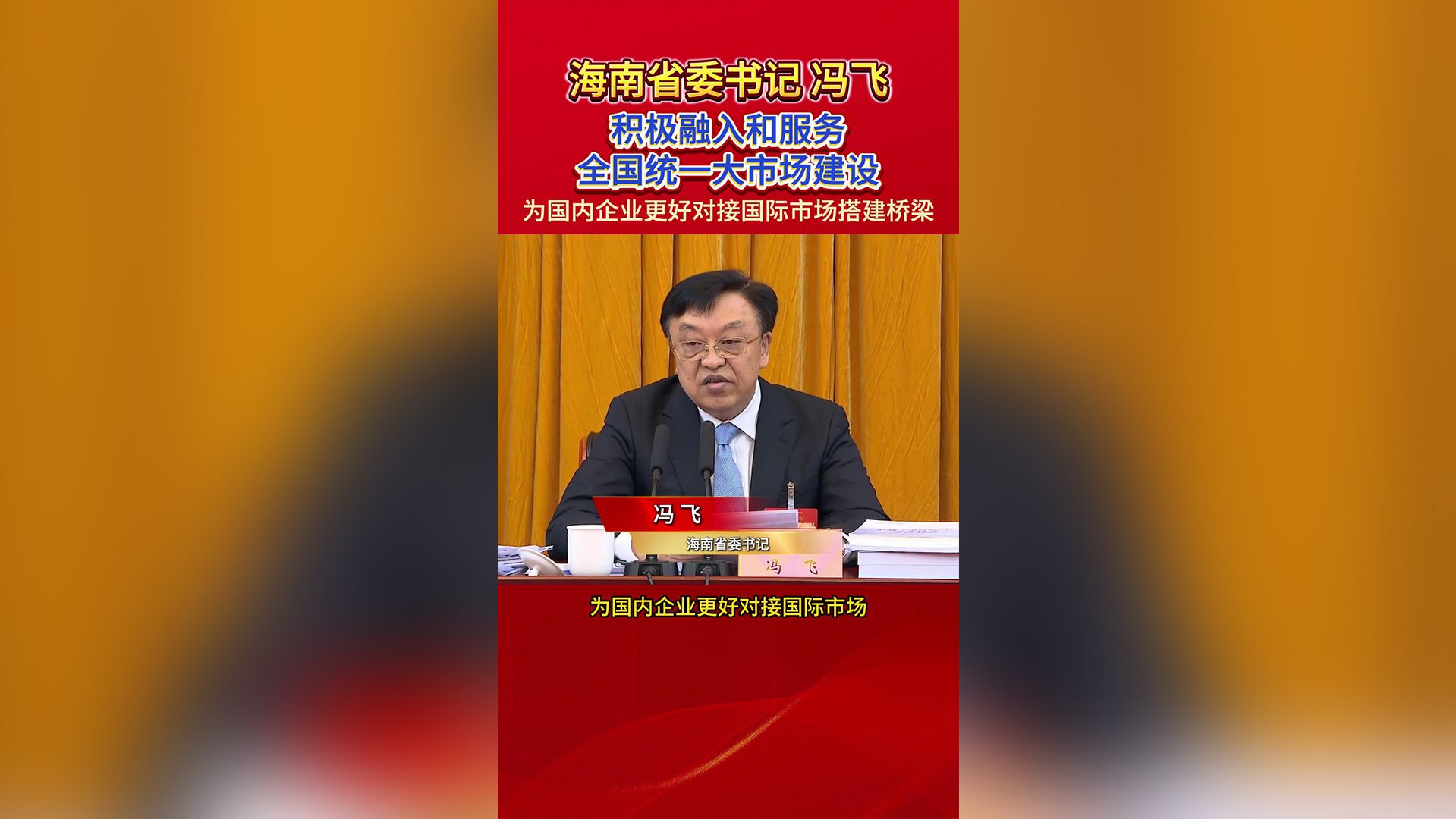 海南省委书记冯飞:积极融入和服务全国统一大市场建设,为国内企业更好对接国际市场搭建桥梁