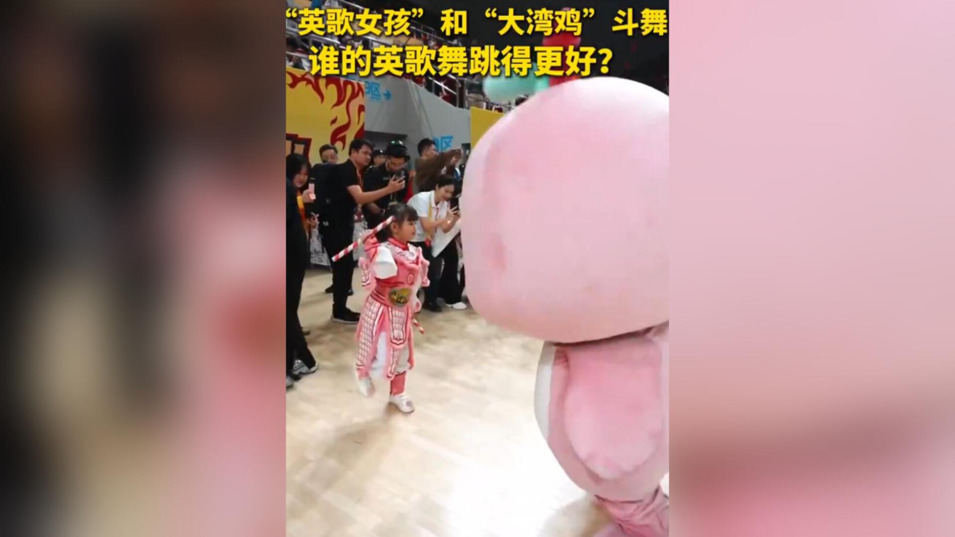 可爱加倍!英歌女孩和大湾鸡斗舞萌化了