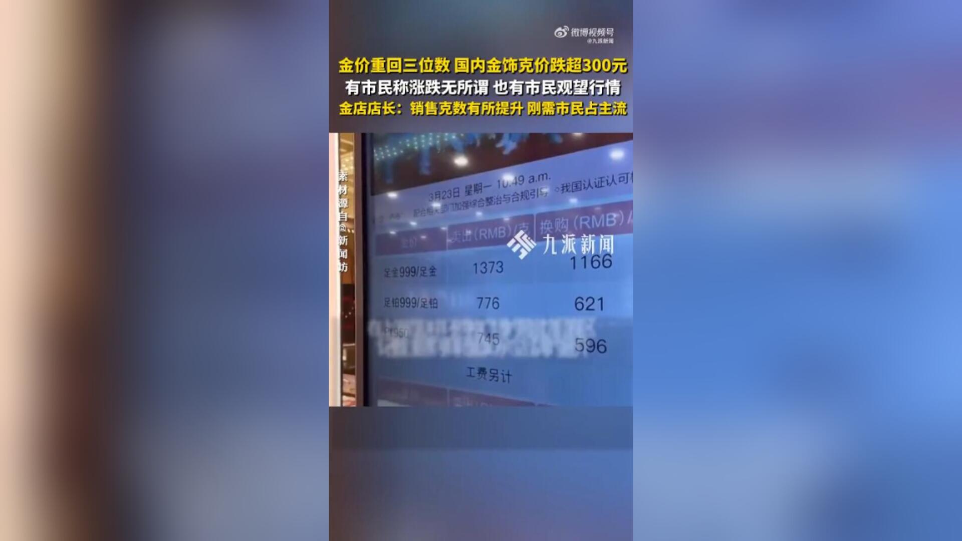 金价大跌重回三位数 消费者发声