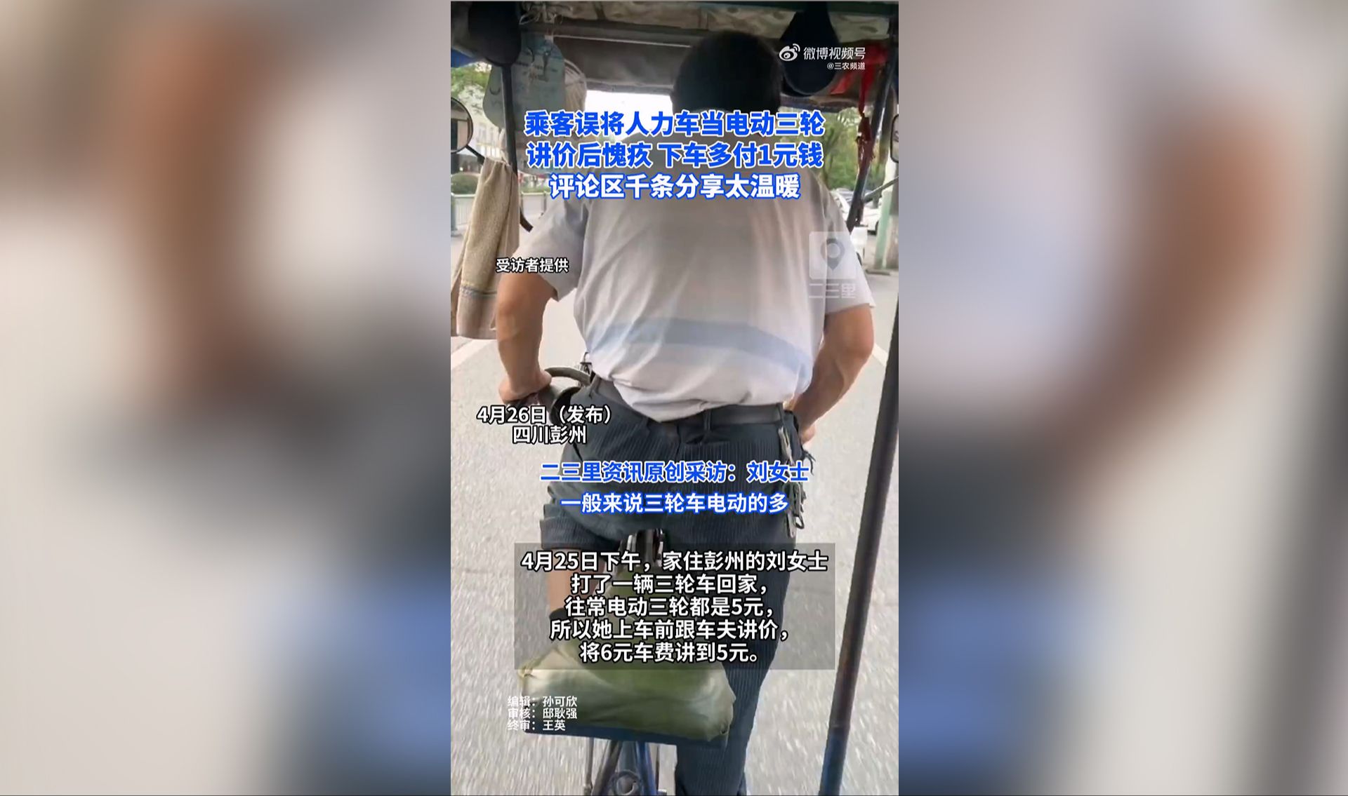 女子砍1元后发现是人力车夫又加价
