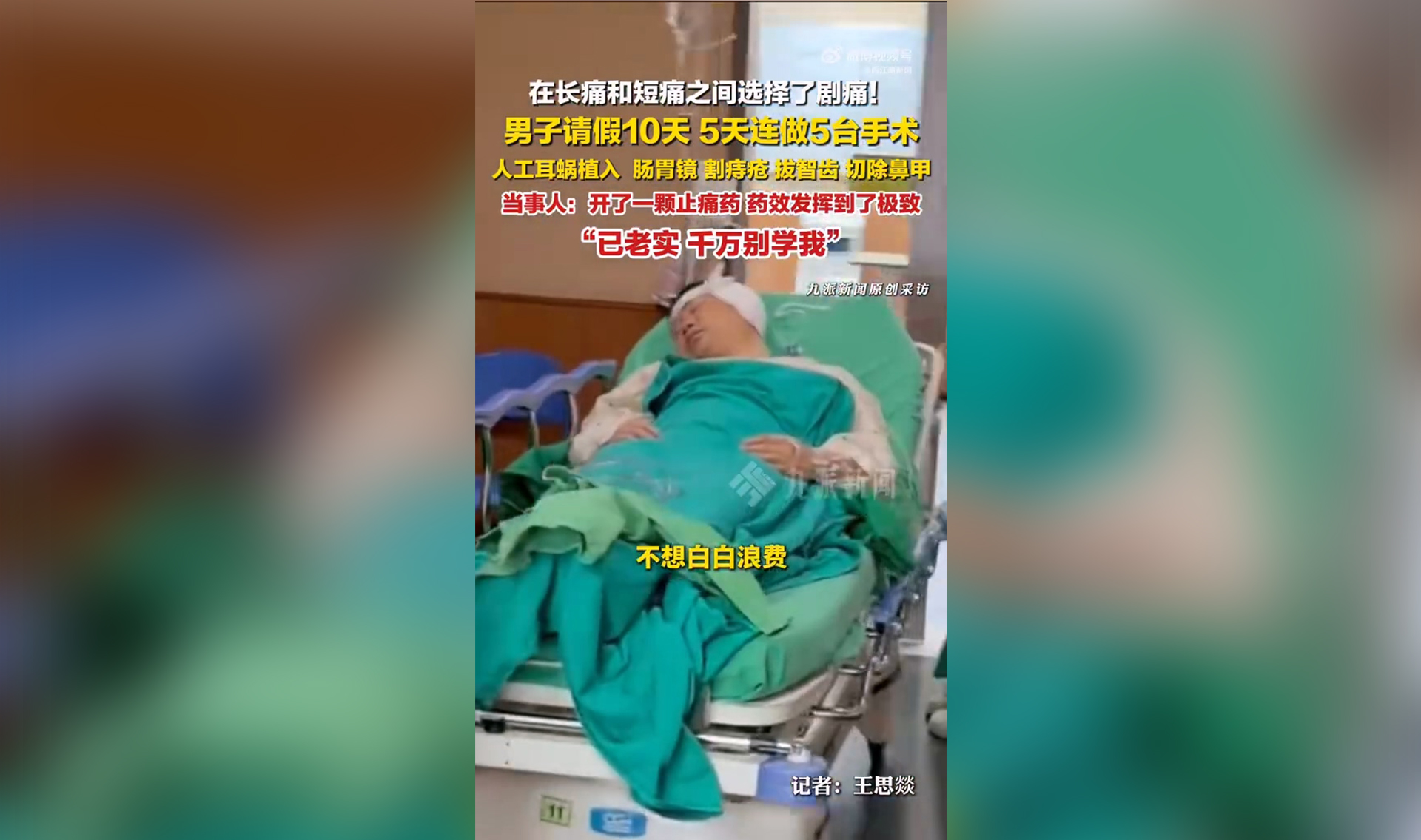 在长痛与短痛之间选择了剧痛 男子5天连做5台手术惊呆医师