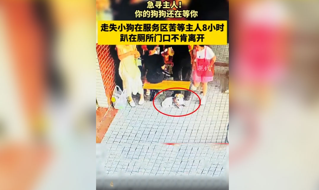 走失小狗在服务区苦等主人8小时,趴在高速服务区不肯离开