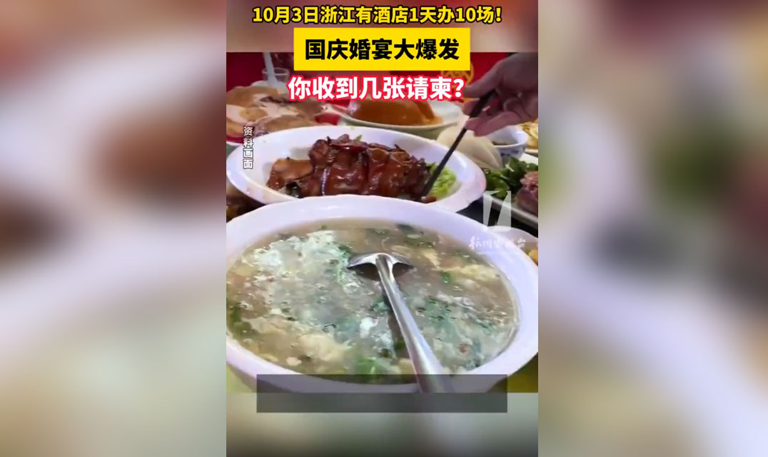 国庆婚宴大爆发,你收到几张请柬?浙江一酒店1天办10场